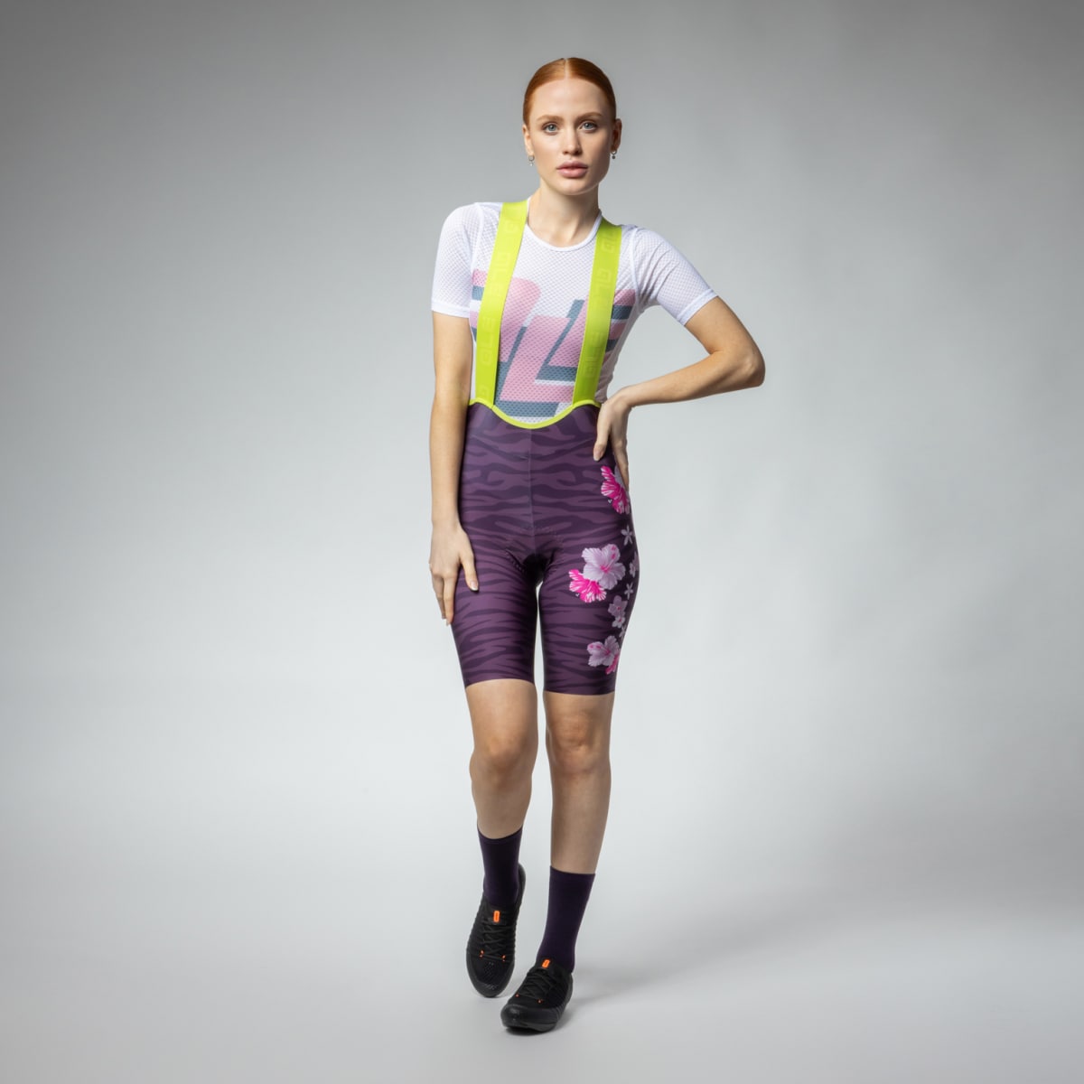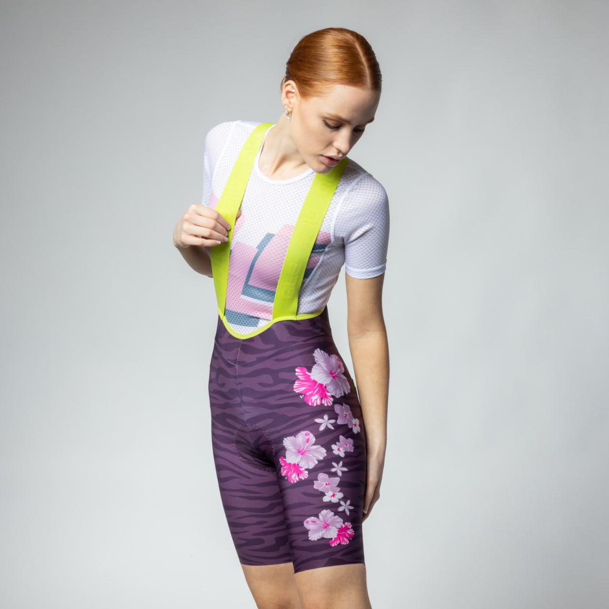 • Tight-fitting women’s bib shorts for road cycling