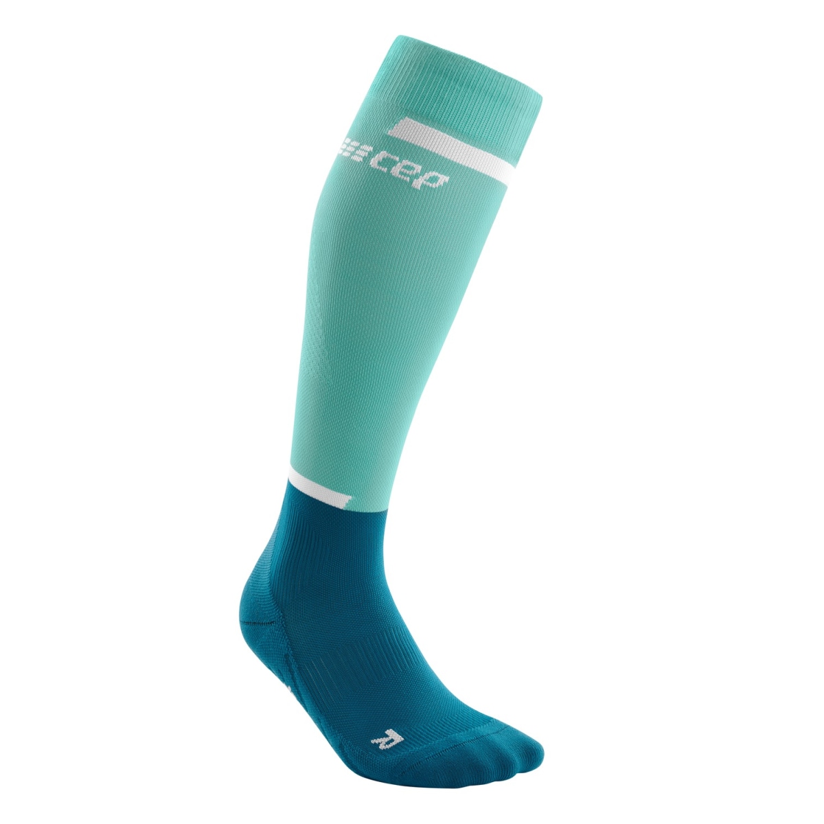 THE RUN COMPRESSION SOCKS TALL by cep provide runners, endurance athletes and triathletes with the ideal basis for their training. The MEDI COMPRESSION technology applies targeted pressure on the foot, provides additional stability and supports recovery. Ventilation zones on the toes ensure an optimal foot climate in both warm and cold temperatures. A strategically placed padding perfectly tops off these long women's running socks.